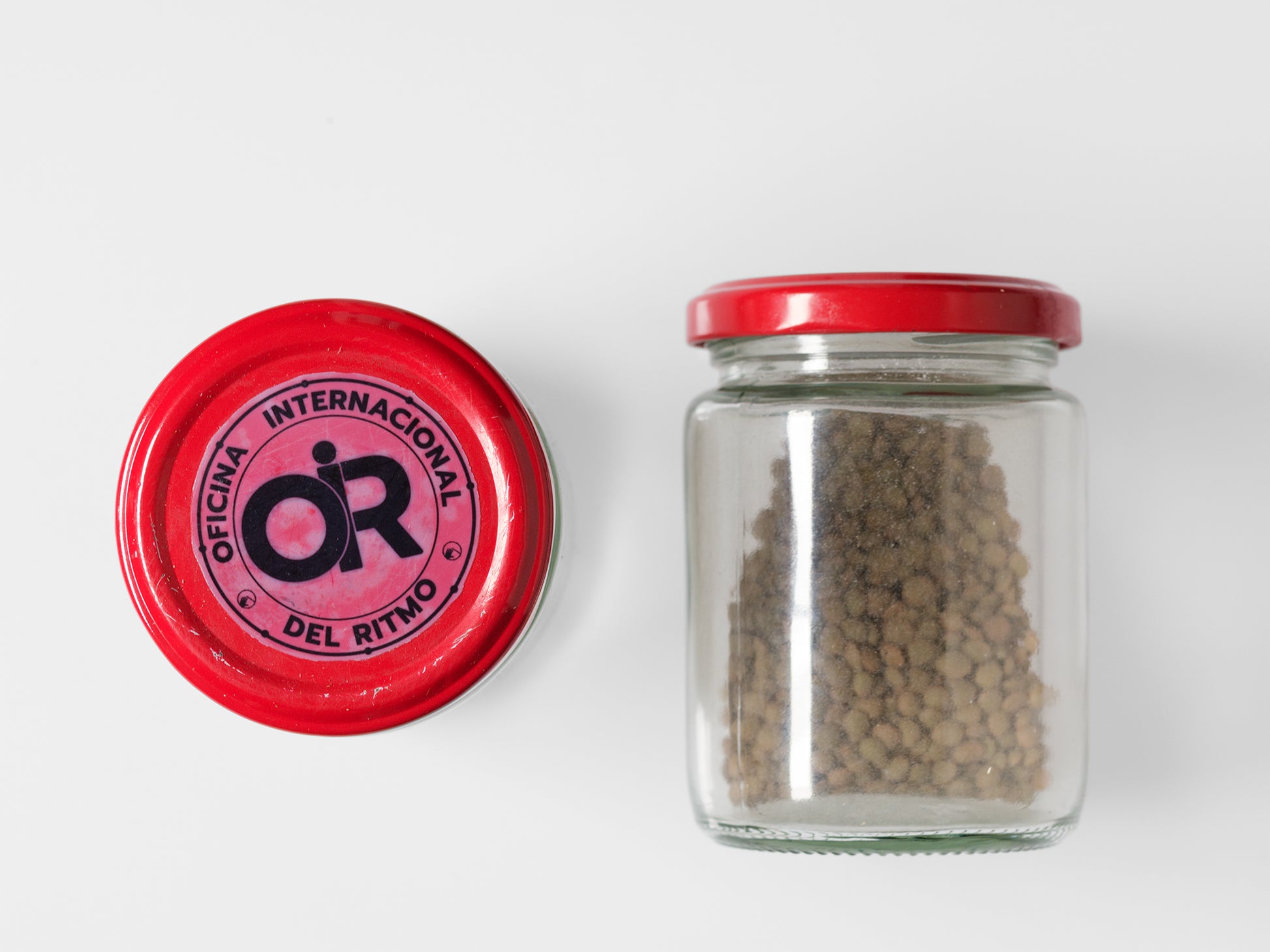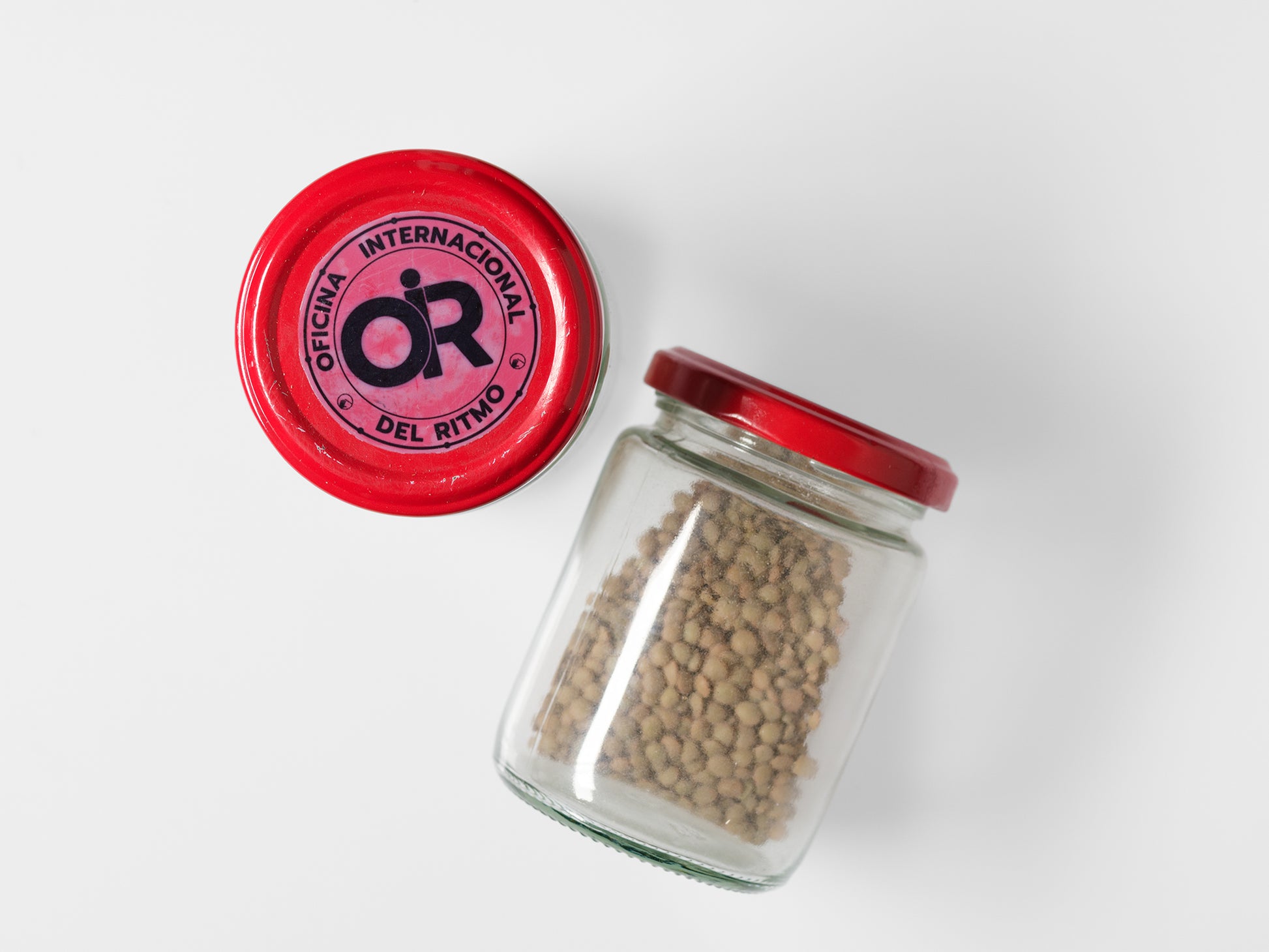 Par de frascos de vidrio con tapa metálica que se utilizan en las primeras clases personalizadas de percusión de Juan Gronemeyer.