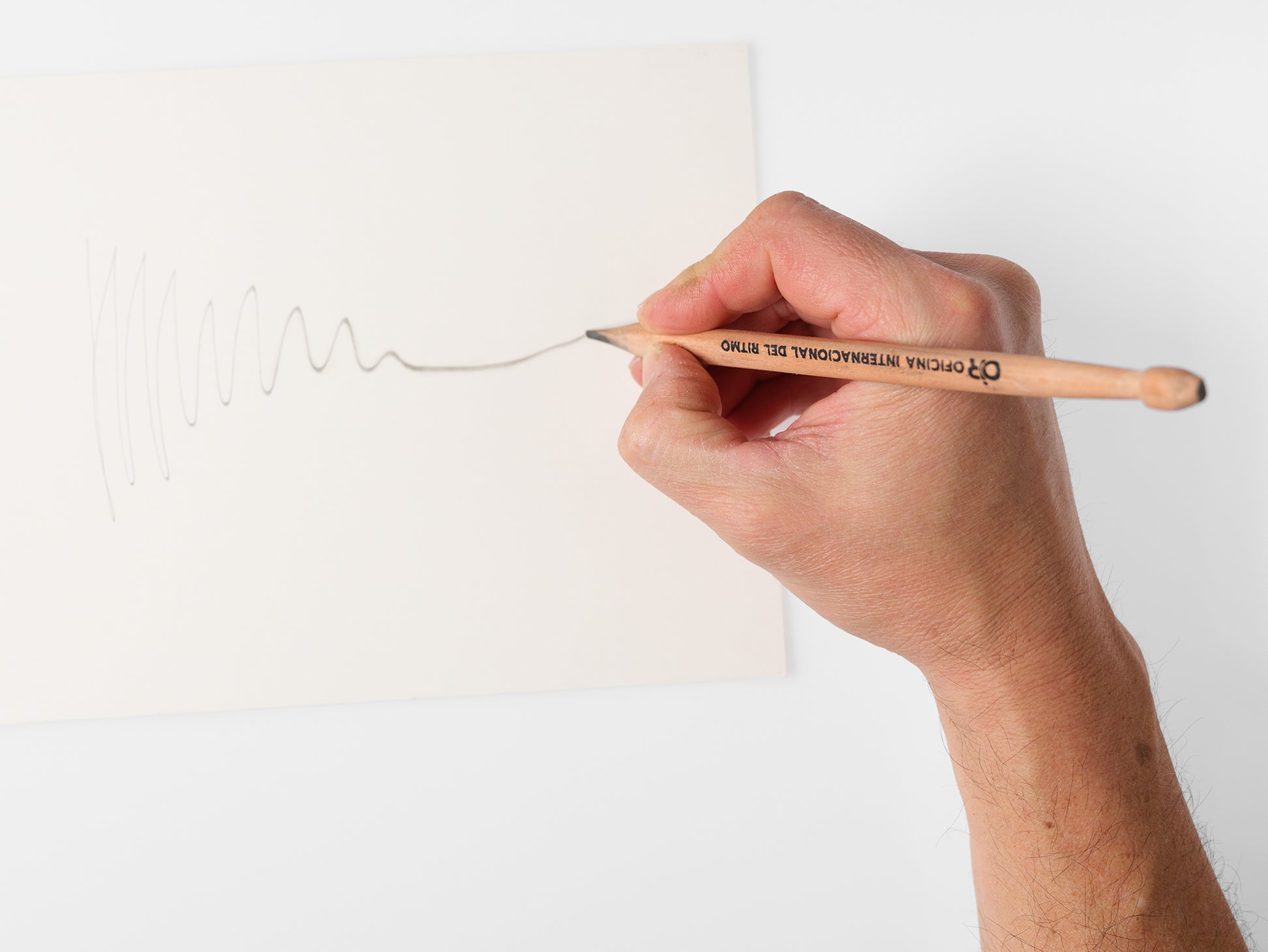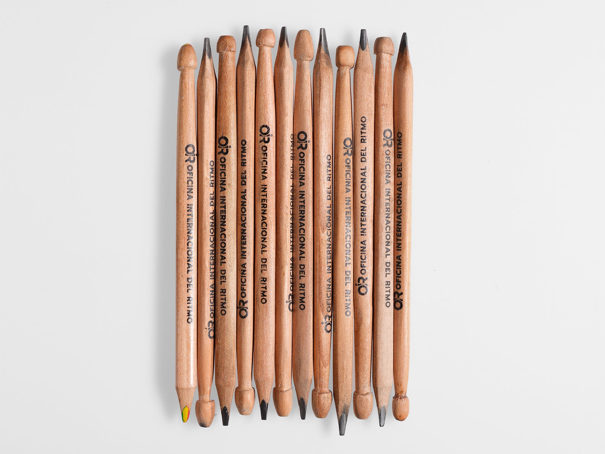 Lápiz grafito HB en forma de baqueta. Hecho a mano por Juan Gronemeyer en la Oficina Internacional del Ritmo.